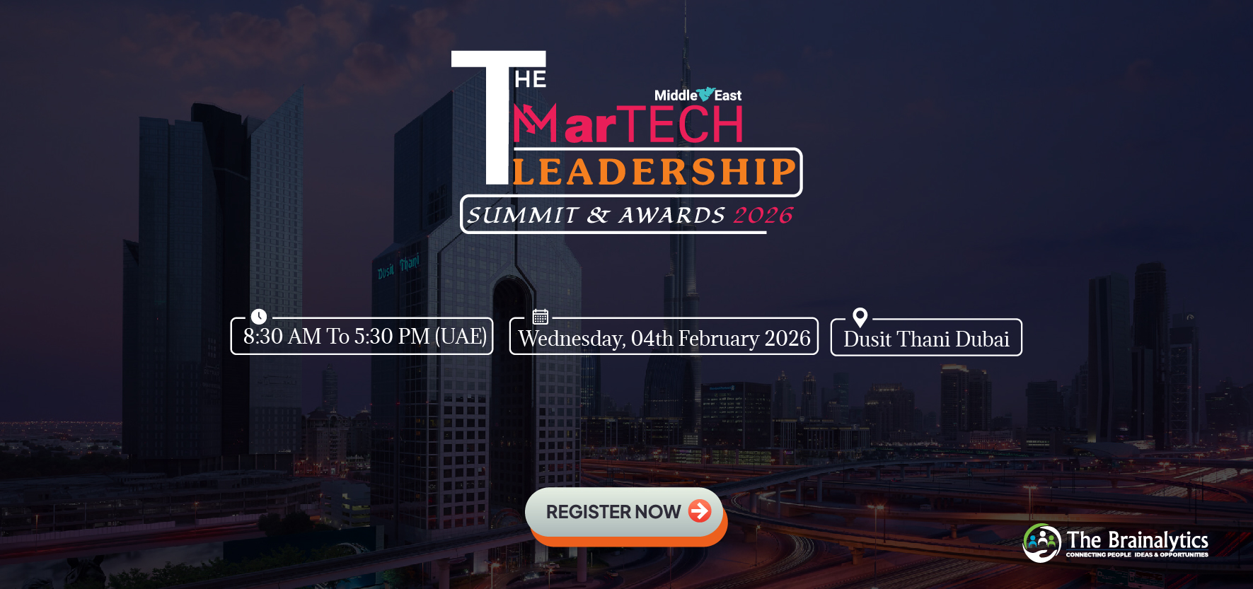 The MarTech Leadership Summit & Awards – Middle East 2026, powered by The Brainalytics, is set to redefine the region’s marketing technology landscape. It’s the marquee gathering where CMOs, brand strategists, innovators, and tech visionaries converge—on the cusp of a market poised for exponential growth.